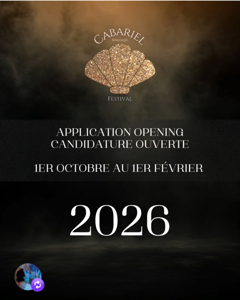« Les candidatures sont officiellement ouvertes du 1er Octobre 2025 au 1er février 2026! Artistes débutant.e.s ou confirmé.e.s, nous vous attendons nombreuses et nombreux pour faire briller vos talents et écrire ensemble une nouvelle page de l’histoire du burlesque.
